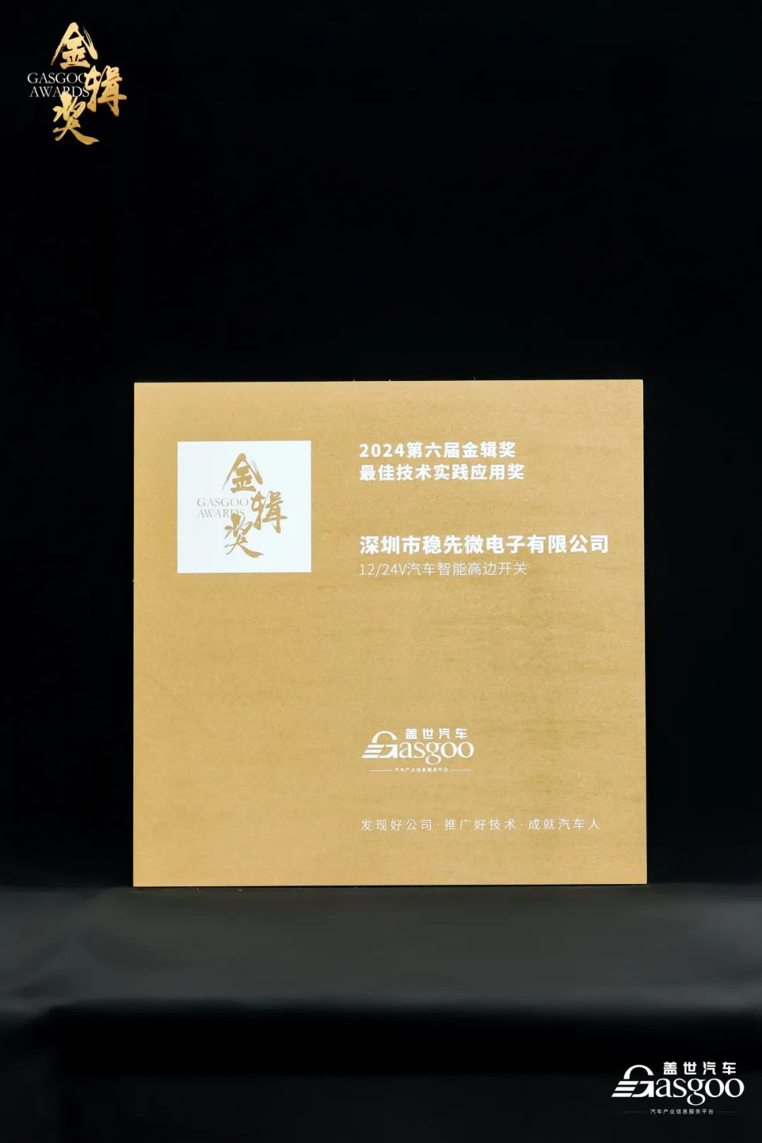 經(jīng)組委會對企業(yè)實踐方案的技術特點、市場及技術應用的差異化優(yōu)勢進行多維度評審,在頒獎典禮上,穩(wěn)先微12/24V車規(guī)級智能高邊開關系列脫穎而出,成功摘取“2024蓋世汽車金輯獎——最佳技術實踐應用獎”。